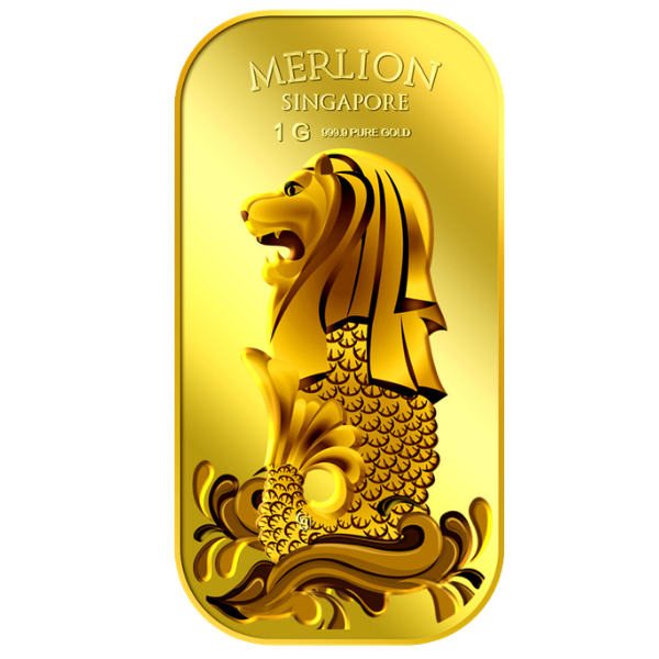 The image is embossed on a 1 gram 999.9 fine gold bar.